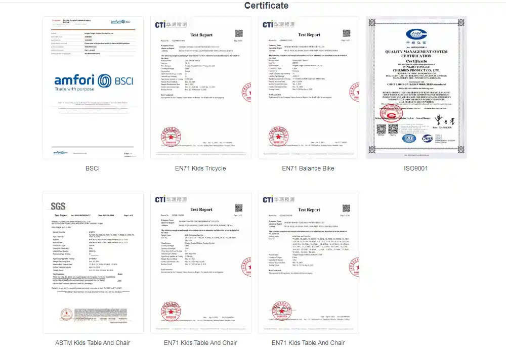 سرٹیفیکیشن جیسےEN71اورastmاشارہ کریں کہ ہمارےبچے اور چھوٹا بچہ ٹرائک کیونکہ اس معاملے میں خصوصی ٹیسٹ کروائے گئے ہیں کہ آیا مواد غیر زہریلا ہے ، چاہے کونے کونے ہاتھ کاٹ ڈالیں گے ، اور آیا حصے مضبوط ہیں ، اور حفاظتی معیارات پر پورا اترتے ہیں۔